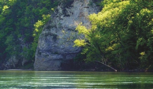 Lake Tenkiller near Tahlequah is home to clear waters, sheer underwater cliffs, rocky bluffs and lush forests.